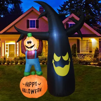 8FT Halloween Inflatable Ghost Tree with Pumpkins and LED Lights