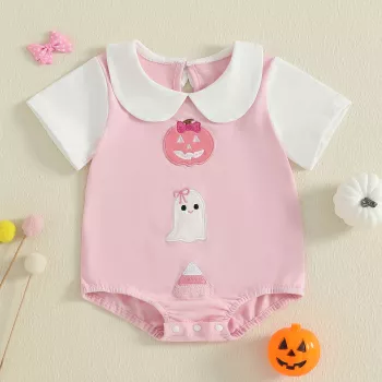 Baby Girl Halloween Romper with Pumpkin Embroidery