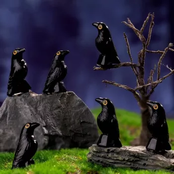 10pcs Realistic Mini Halloween Crow Figurines Resin Black Bird Decorations
